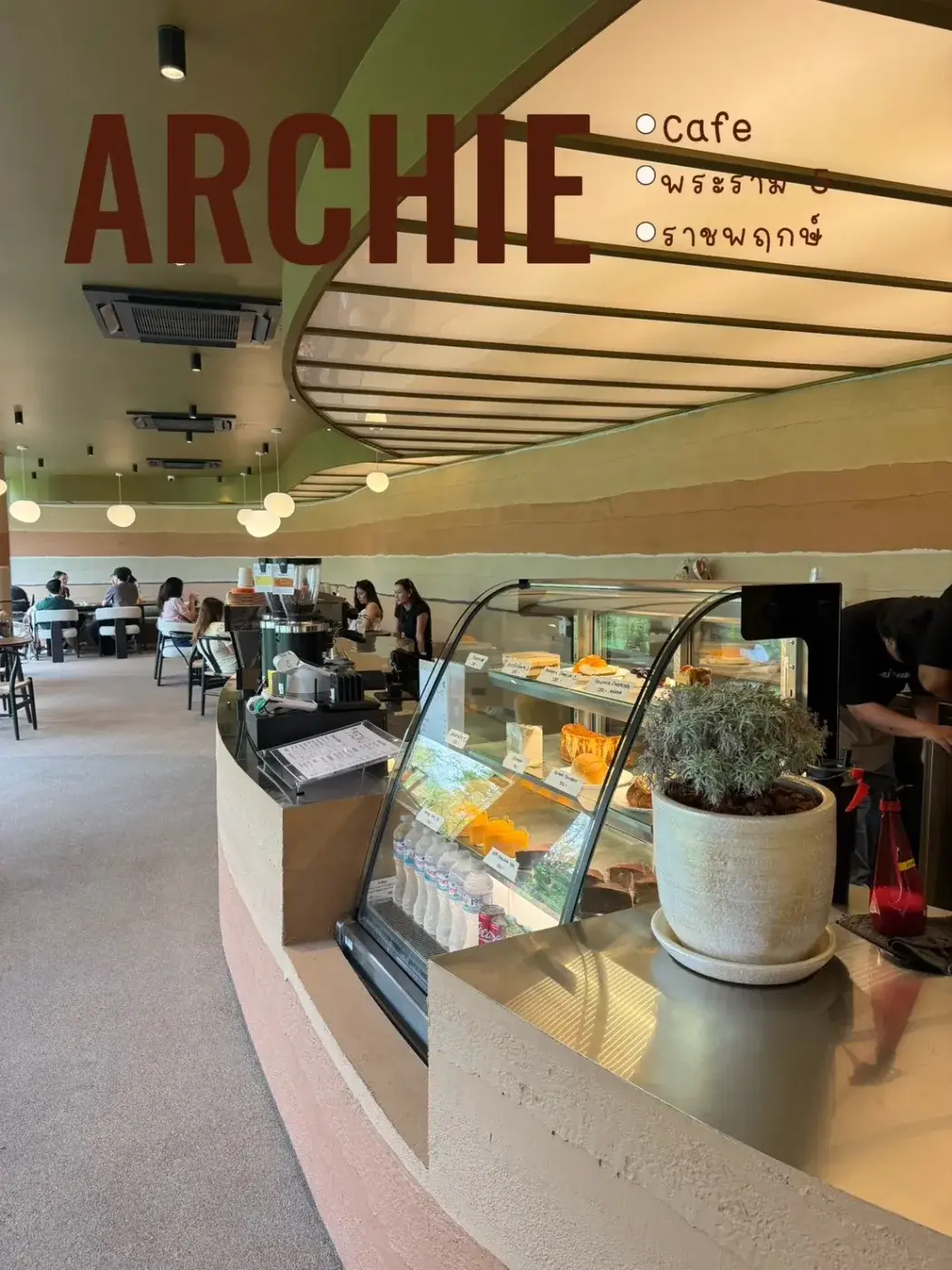 Archie Cafe เป็นคาเฟ่เปิดใหม่ ที่ตกแต่งร้านเป็นสไตล์ Earth Line คือสีเอิร์ทโทนไล่ระดับสี เป็นศิลปะที่สวยงาม แปลกใหม่ของคาเฟ่ดีๆเลยนะ และคาเฟ่มีรูปทรงโค้งมน ที่ดูแปลกใหม่ดี