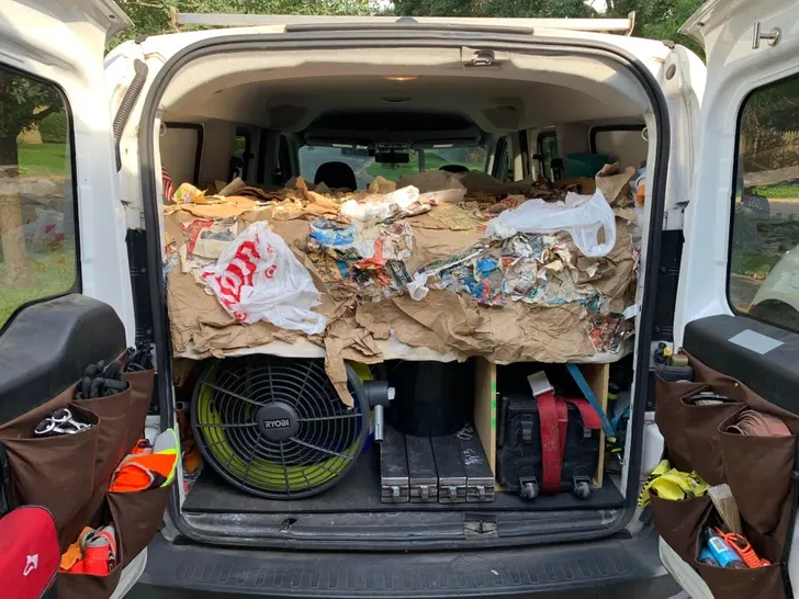 3. ในการทำงานผมต้องใช้ขยะในการบังสิ่งของต่าง ๆ ที่อยู่ในรถตู้ของผม