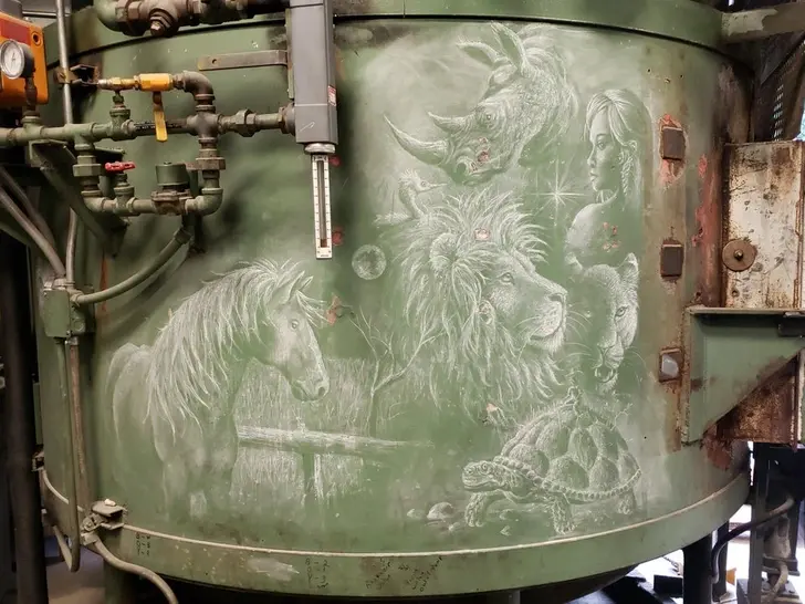 4. วันหนึ่งผมเจอสิ่งนี้ในที่ทำงานของผม ไม่มีชื่อภาพ, ไม่รู้ว่าใครวาด, วาดด้วยชอล์ค, 2019