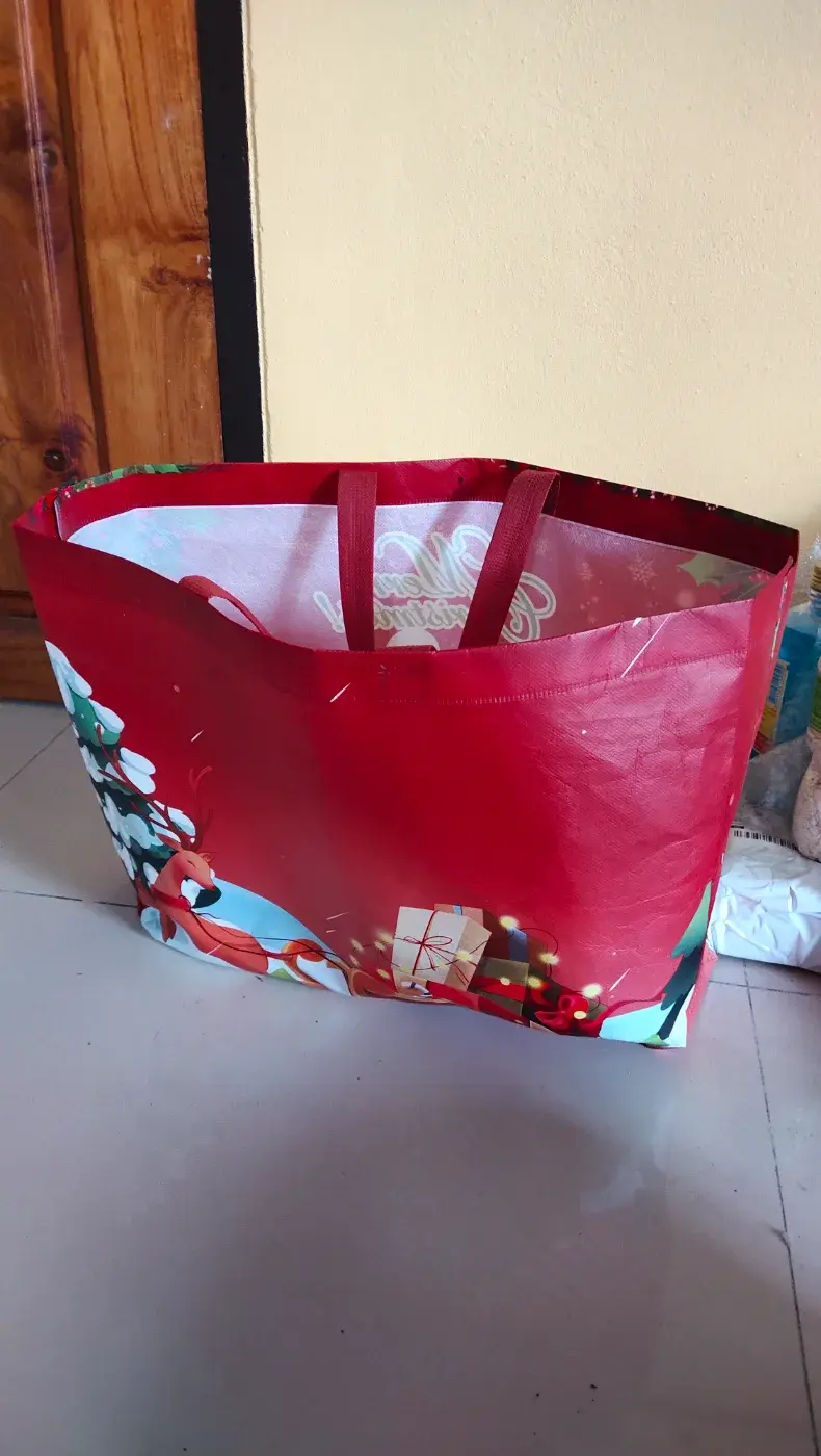 ในวันนั้นเองหลังจากกลับจากทำบุญ ฉันก็ไปรับกล้วยที่ฝากเอาไว้ โดยนำถุงผ้าไปด้วย..จะเรียกว่าผ้าหรือไม่วัสดุมันคล้าย กับพลาสติกแต่มีความเหนียวพอสมควร..ราคาใบละ 10 บาทใส่ของได้ดีทีเดียว