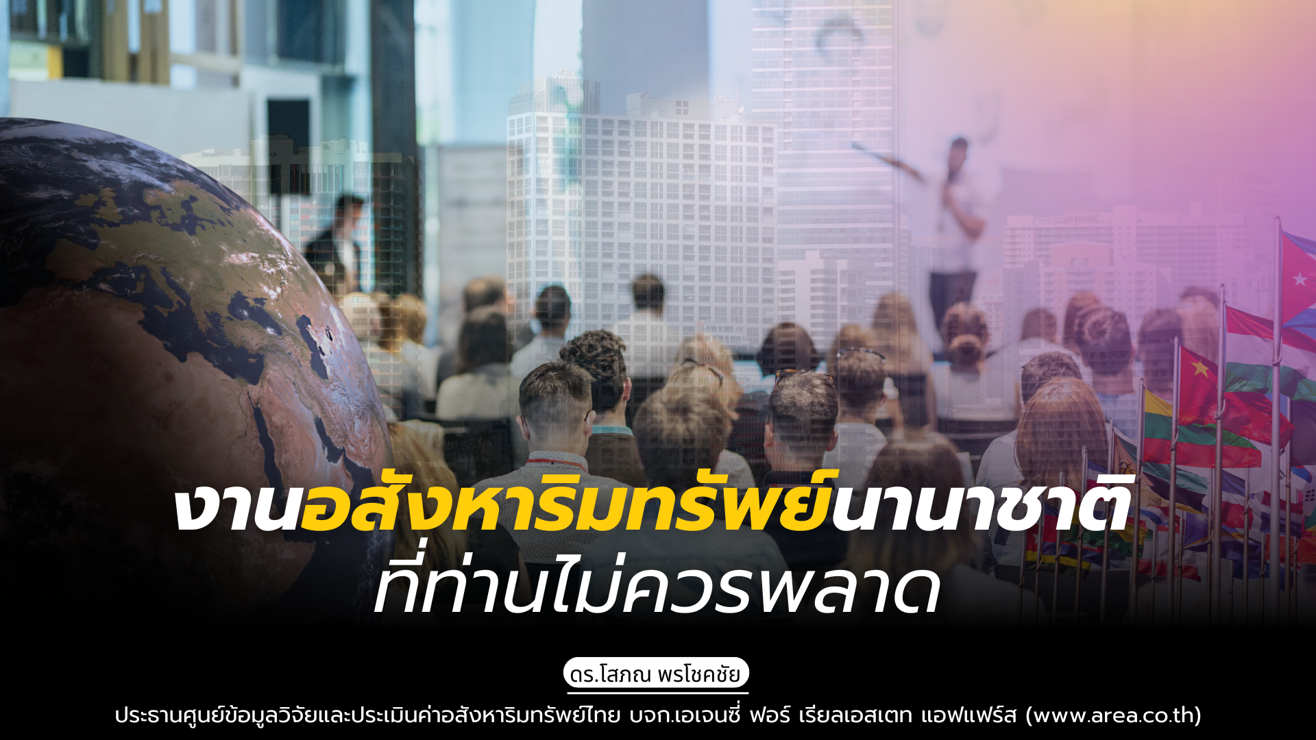 ดร.โสภณ พรโชคชัย ประธาน ศูนย์ข้อมูลวิจัยและประเมินค่าอสังหาริมทรัพย์ไทย บจก. เอเจนซี่ ฟอร์ เรียลเอสเตท แอฟแฟร์ส ในฐานะประธานสมาพันธ์อสังหาริมทรัพย์สากล (International Real Estate Federation: FIABCI) ประจำประเทศไทย ขอนำเสนองานเอ็กซ์โปและงานสัมมนาอสังหาริมทรัพย์นานาชาติ เพื่อเชิญชวนให้ไปร่วมงาน ดังรายละเอียดต่อไปนี้: