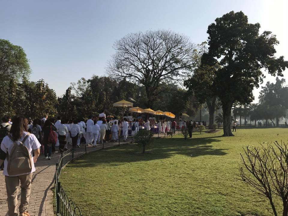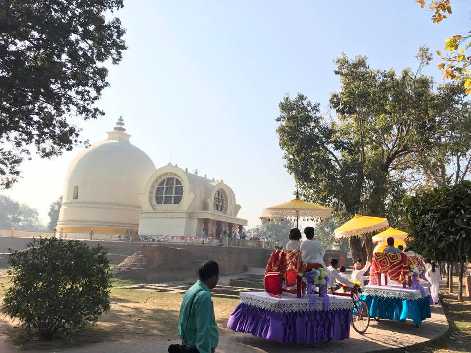 แสงในยามเช้า ขบวนแห่เข้าไปเพื่อสักการะสถานที่ในการวางธาตุขันธ์ก่อนกวายพระเพลิง (กุสินารา)