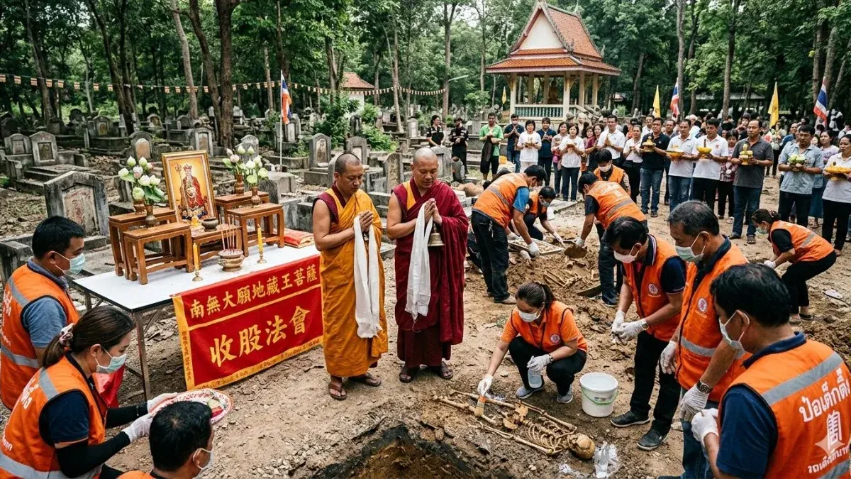 ท่ามกลางความเงียบสงบของสุสาน พิธี "ล้างป่าช้า" หรือในภาษาจีนเรียกว่า "สิวโกว" (收孤) ได้อุบัติขึ้นไม่ใช่เพียงเพื่อความเป็นระเบียบเรียบร้อยของสถานที่ แต่คือการสำแดงมหากุศลอันยิ่งใหญ่ตามคติพุทธศาสนามหายานและเต๋า เป็นการหยิบยื่นความเมตตาที่ก้าวข้ามขอบเขตระหว่างโลกของคนเป็นและโลกของคนตาย เพื่อสงเคราะห์ดวงวิญญาณที่ถูกลืมให้หลุดพ้นจากพันธนาการแห่งความทุกข์