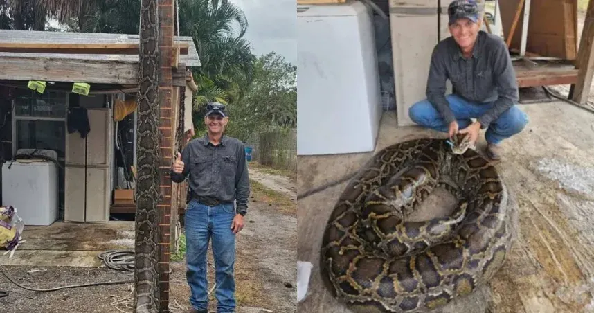 ครอบครัวหนึ่งในรัฐฟลอริดา สหรัฐอเมริกา ได้พบกับงูเหลือมพม่าขนาดยักษ์ขณะกำลังล่าสัตว์ต่างถิ่นที่รุกรานในเขตอนุรักษ์ธรรมชาติ คาร์ล แจ็กสัน ผู้เป็นพ่อ ตอนแรกคิดว่ามันเป็นเพียงงูขนาดธรรมดา แต่เขารู้ตัวว่าคิดผิดก็ต่อเมื่อจับหัวงูด้วยมือเปล่า เขาถูกงูเหลือมลากไปเกือบ 10 เมตร โชคดีที่สมาชิกในครอบครัวทั้งสี่คนช่วยกันจับมันได้ และได้งูเหลือมป่าที่มีน้ำหนักมากเป็นอันดับสองในประวัติศาสตร์ของพื้นที่นั้นมาครอง