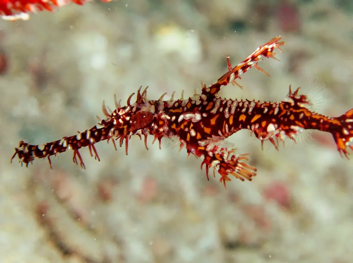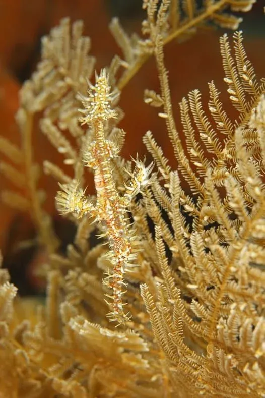 เสน่ห์สำคัญที่สุดของปลาชนิดนี้คือความสามารถในการพรางตัวระดับน่าทึ่ง ลำตัวมักประดับด้วยหนามเล็กๆ ติ่งเนื้อ และลวดลายซับซ้อนหลายเฉดสี ทำให้มันดูคล้ายกัลปังหา ขนนกทะเล หรือเศษสิ่งมีชีวิตล่องลอยในน้ำ จึงไม่ใช่เรื่องแปลกที่มันจะถูกเรียกว่า “ghost pipefish” เพราะทั้งดูเหมือนผีที่พร่าเลือนในแนวปะการัง และหายตัวจากสายตาได้อย่างแนบเนียนมาก บ่อยครั้งมันจะว่ายในท่าหัวทิ่มลงหรือปล่อยตัวลอยตามกระแสน้ำ เพื่อให้ดูเหมือนวัตถุธรรมชาติชิ้นหนึ่งมากกว่าจะเป็นปลา