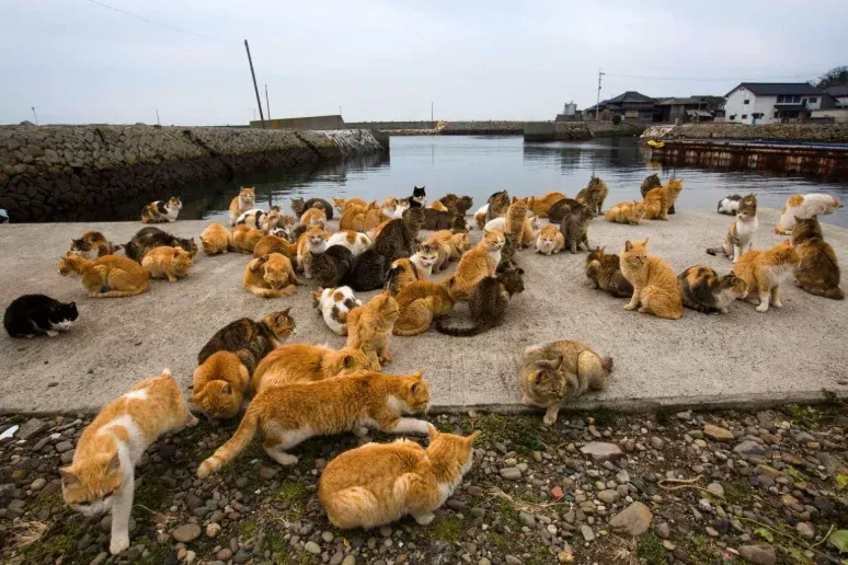 ดินแดนศักดิ์สิทธิ์ที่ "ห้ามสุนัขเหยียบ" เพื่อไม่ให้แมวบนเกาะเกิดความเครียดหรือรู้สึกถูกคุกคามนั่นเอง ที่นี่คือ เกาะแมว ที่โด่งดังที่สุดในญี่ปุ่น ประชากรแมวบนเกาะนี้มีจำนวนมากกว่ามนุษย์เสียอีก ชาวประมงท้องถิ่นเชื่อว่าแมวคือผู้นำโชคลาภและการจับปลาที่ดีมาให้ พวกเขาจึงสร้างศาลเจ้าแมวไว้บนเกาะ