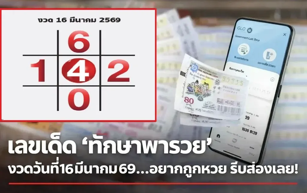 สำหรับลอตเตอรี่งวดนี้ ก็ออกวันที่ 16 มีนาคม 2569 เหล่าบรรดาเซียนหวย และคนรักตัวเลขทั้งหลาย ได้โปรดมารวมตัวกันทางนี้ เลย เพราะว่าเรามีแนวทางเลขเด็ดดีๆ จากตาราง "ทักษาพารวย" ที่เรียกได้ว่าเข้าเกือบทุกงวด เราก็เลยไม่รอช้า รีบคว้าเอาข้อมูลมาฝากสมาชิกทุกๆ ท่านทันที เพื่อเอาแนวทางนี้ไปใช้พิจารณาในการซื้อหวยต่อไป