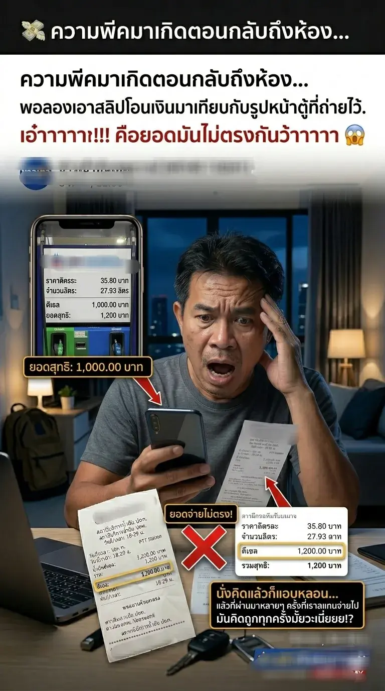 ⛽️ วันนี้เทวดาดลใจให้ถ่ายรูปตู้เติมน้ำมัน... กลับมาดูสลิป เอ้า! ยอดไม่ตรงกันเฉย แล้วที่ผ่านมาฉันโดนไปเท่าไหร่วะเนี่ย!? 😂