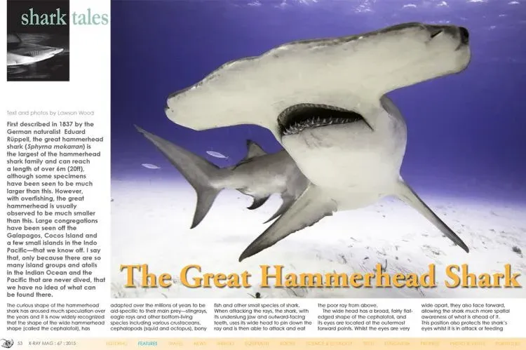 ใต้ภาพเอกซเรย์ที่เผยให้เห็นเพียงโครงร่างสีขาวเรืองบนพื้นหลังมืด ฉลามหัวค้อนปรากฏตัวราวกับสิ่งมีชีวิตจากโลกอนาคต มากกว่าจะเป็นนักล่าที่แหวกว่ายอยู่ในท้องทะเลร่วมสมัย รูปทรงศีรษะที่แผ่ออกด้านข้างเป็นแนวตรงคล้ายตัว T ทำให้มันดูประหลาด สง่างาม และน่าเกรงขามในเวลาเดียวกัน แต่ความแปลกตานี้ไม่ใช่เพียงลูกเล่นของธรรมชาติ หากคือหนึ่งในงานออกแบบทางวิวัฒนาการที่เฉียบคมที่สุดของโลกใต้ทะเล