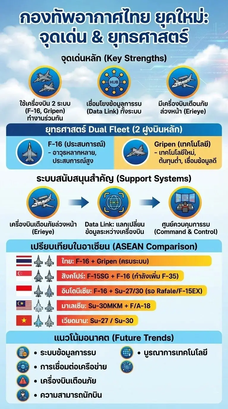สิ่งที่ทำให้ไทยแตกต่างไม่ใช่เพียงจำนวนเครื่องบิน แต่คือ "ศักยภาพในการบริหารจัดการ"ที่สามารถเปลี่ยนความแตกต่างของเทคโนโลยีให้กลายเป็นจุดแข็งเชิงยุทธศาสตร์ ซึ่งหลายประเทศในอาเซียนยังไม่สามารถทำได้เทียบเท่า..