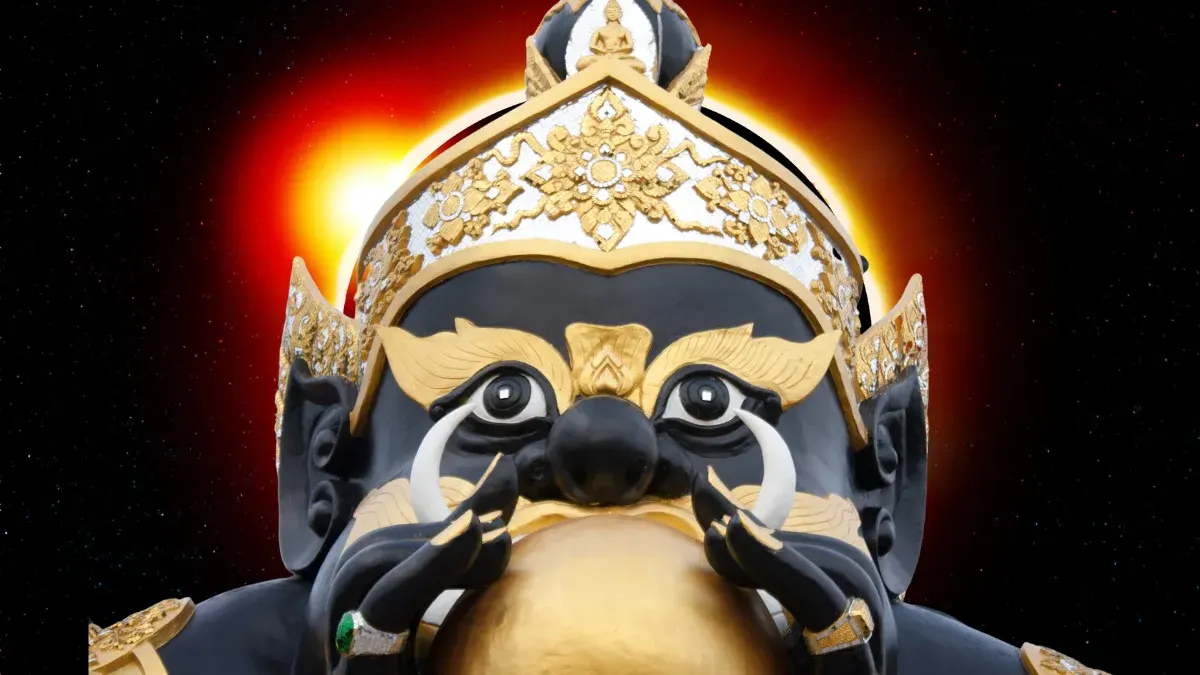 อสูรราหูอมพระอาทิตย์ (ฮินดู/เอเชีย): ตำนานที่คุ้นเคยในแถบเอเชียใต้และไทย เชื่อว่า "ราหู" อสูรผู้มีร่างเพียงครึ่งท่อน พยายามกลืนกินดวงอาทิตย์เพื่อล้างแค้นที่ทำให้ตนต้องโทษ จึงเกิดเป็นปรากฏการณ์คราสชั่วขณะ