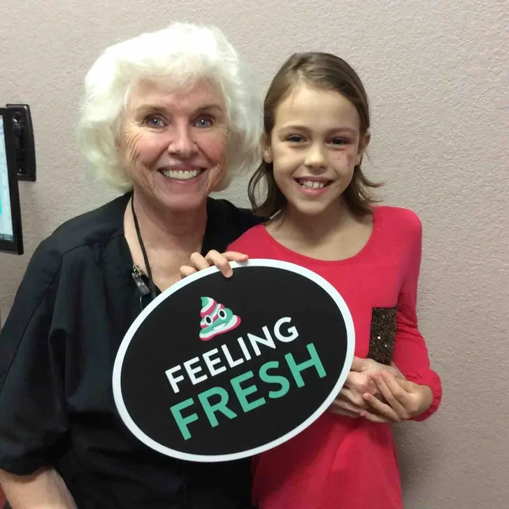 7. นี่คือทันตแพทย์ที่ยอมถ่ายรูปกับอีโมจิรูปอุนจี๊กับคนไข้ตัวน้อยของเธอ