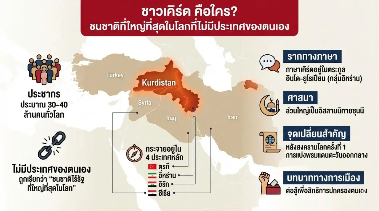 กลุ่มชาติพันธุ์ที่มีประวัติศาสตร์อันยาวนานและมีความซับซ้อนที่สุดกลุ่มหนึ่งในโลก ชื่อของ "ชาวเคิร์ด" (Kurds) จะต้องปรากฏขึ้นมาเป็นอันดับต้นๆ อย่างแน่นอน ถ้าจะให้อธิบายแบบเข้าใจง่ายที่สุด ชาวเคิร์ดคือกลุ่มชาติพันธุ์ที่มีวัฒนธรรม ภาษา และอัตลักษณ์เป็นของตัวเองอย่างชัดเจน แต่สิ่งที่ทำให้พวกเขากลายเป็นจุดสนใจในหน้าประวัติศาสตร์ร่วมสมัยคือการที่พวกเขาเป็น "กลุ่มชาติพันธุ์ที่ใหญ่ที่สุดในโลกที่ไม่มีประเทศเป็นของตนเอง" ซึ่งเรื่องนี้มีเบื้องลึกเบื้องหลังที่น่าสนใจมาก