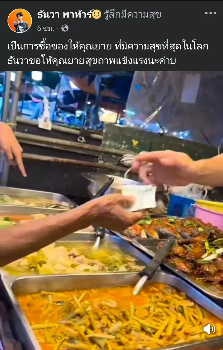 จากภาพที่ปรากฏ บรรยากาศเป็นช่วงเวลาปกติในตลาดที่มีผู้คนเดินผ่านไปมา ระหว่างนั้นมีคุณยายท่านหนึ่งกำลังเลือกซื้ออาหารอยู่หน้าร้านขายกับข้าว โดยในจังหวะเดียวกัน ธันวาซึ่งอยู่บริเวณนั้นก็ได้เข้าไปพูดคุยกับคุณยาย ก่อนจะตัดสินใจช่วยซื้ออาหารให้ พร้อมทั้งส่งมอบให้ด้วยรอยยิ้มอย่างเป็นกันเอง