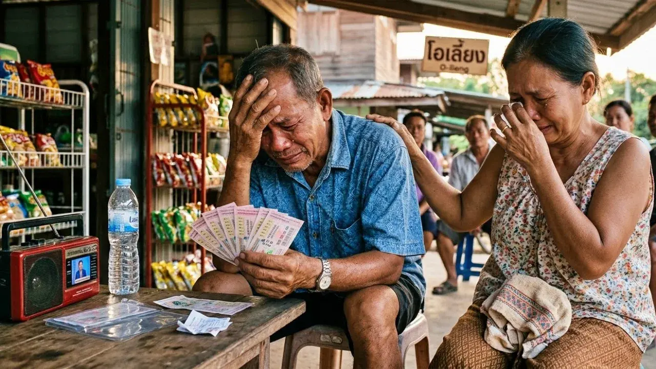นี่คือภาพสะท้อนความรู้สึกสะเทือนใจของลุงและป้าชาวไทยที่ต้องผิดหวังจากการเสี่ยงโชค ในภาพนี้ คุณจะเห็นแววตาที่เต็มไปด้วยความเสียใจและคราบน้ำตาของทั้งสองคน ซึ่งเป็นภาพที่เกิดขึ้นจริงในสังคมไทยเมื่อความหวังที่จะลืมตาอ้าปากจากการถูกรางวัลใหญ่ต้องพังทลายลง การซึ้อลอตเตอรี่สำหรับหลายคนไม่ใช่แค่การเสี่ยงโชค แต่คือความหวังสุดท้ายในการยกระดับคุณภาพชีวิต ขอส่งกำลังใจให้ทุกคนที่กำลังต่อสู้ชีวิตในทุกๆ วันนะ