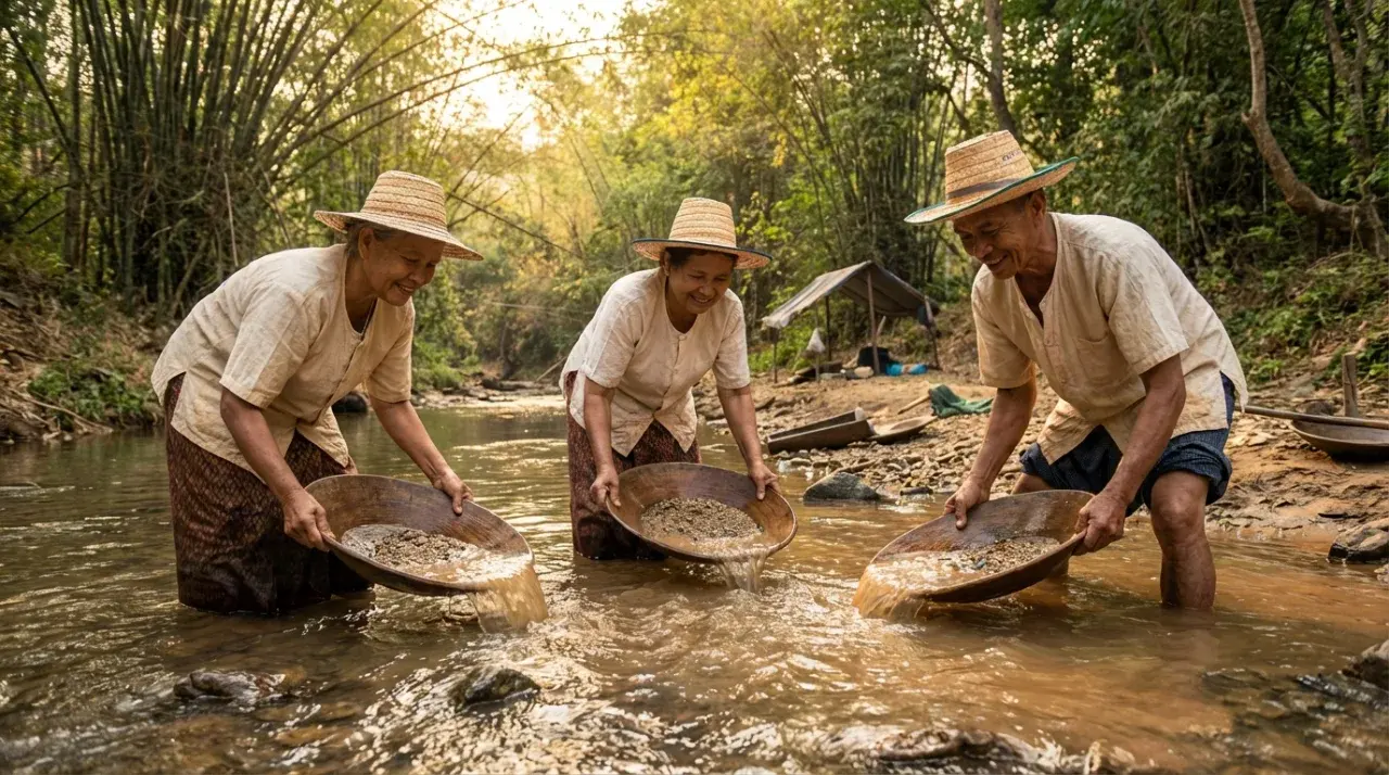 บรรยากาศ: ชาวบ้านจะมารวมตัวกันที่คลองทองเพื่อใช้ "เลียง" ร่อนหาทอง ใครดวงดีอาจเจอทองก้อน (Gold Nugget) ขนาดเท่าเมล็ดข้าวโพด!