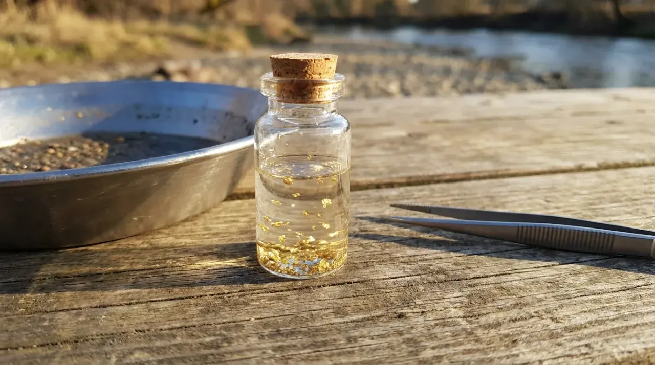3. ขวดแก้วใบเล็ก: ไว้สำหรับเก็บเกล็ดทองที่ร่อนได้