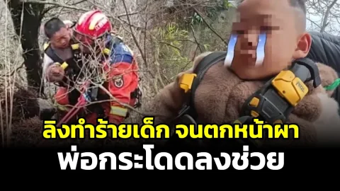 เหตุลิงทำร้ายเด็กจนตกหน้าผา พ่อกระโดดลงช่วย