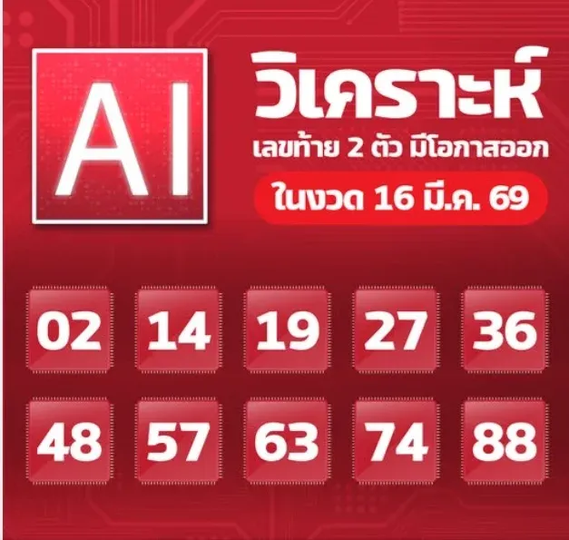 AI วิเคราะห์เลขท้าย 2 ตัว งวดวันที่ 16 มีนาคม 69..โดยใช้สถิติย้อนหลัง 20 ปี