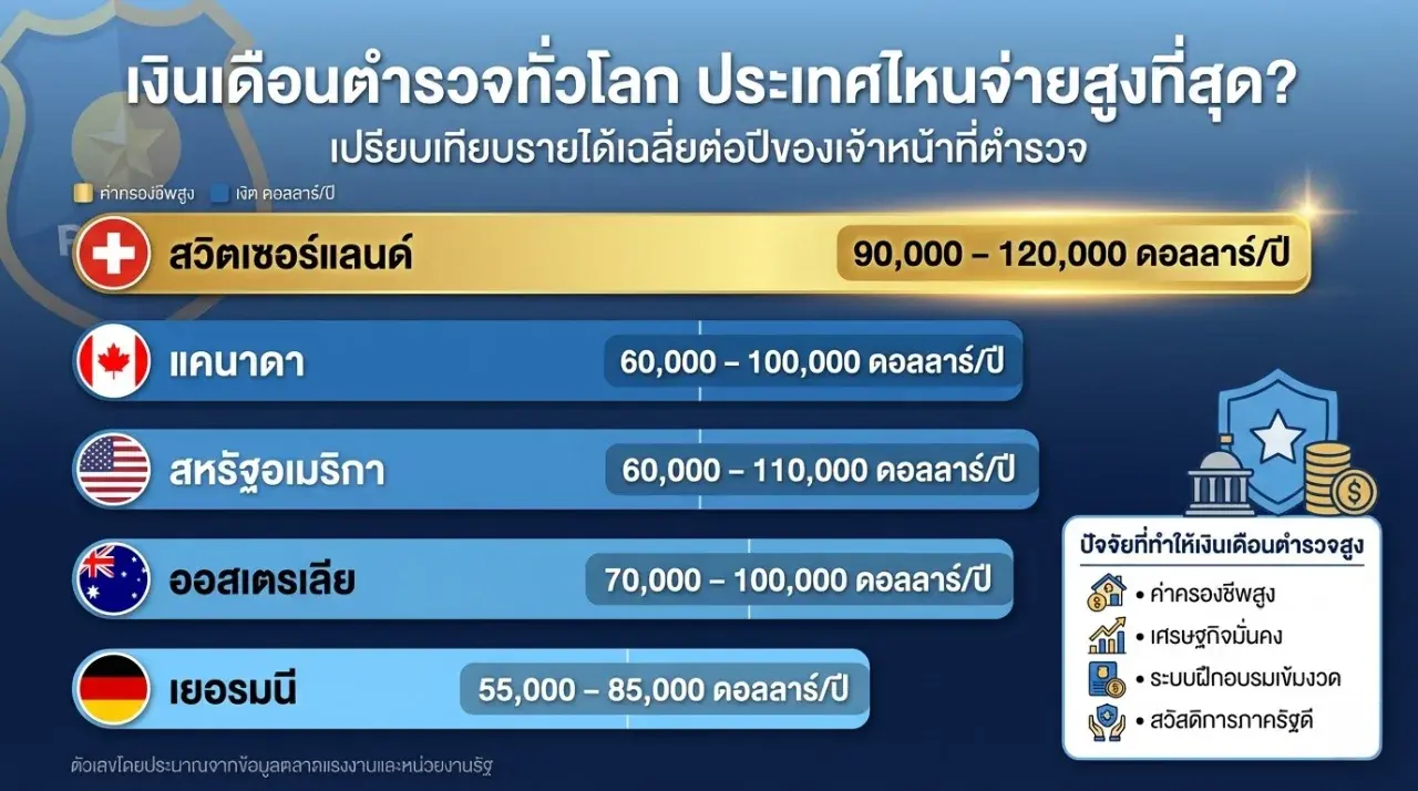 ประเทศที่จ่ายค่าตอบแทนให้เจ้าหน้าที่ตำรวจสูงที่สุดในโลก