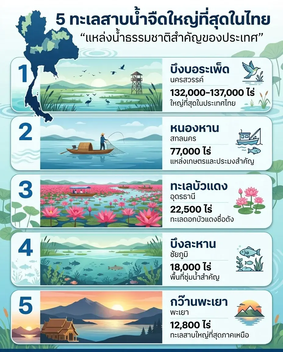 5 อันดับทะเลสาบน้ำจืดที่มีขนาดใหญ่ที่สุดในประเทศไทย