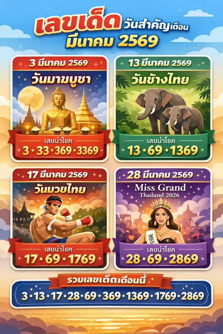 "เลขเด็ดเลขดังวันสำคัญ" งวดวันที่ 16 มีนาคม 69..ส่องด่วน ก่อนหวยหมดแผง!