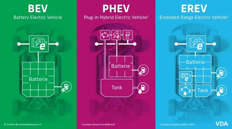 **PHEV (Plug-in Hybrid) และ EREV (Extended Range EV) เป็นรถยนต์ไฟฟ้าที่เสียบปลั๊กชาร์จได้เหมือนกัน แต่ต่างกันที่การทำงาน: PHEV ใช้เครื่องยนต์+มอเตอร์ขับเคลื่อนล้อคู่กัน ทำให้เร่งแซงดีแต่ซับซ้อน ส่วน EREV ใช้เครื่องยนต์ทำหน้าที่เป็นปั่นไฟให้มอเตอร์ขับเคลื่อนล้อ 100% ให้ความรู้สึกเหมือนรถไฟฟ้าล้วนและประหยัดกว่า