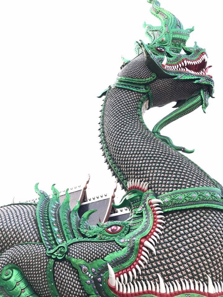 สีเขียวคือสีแห่งแห่งความกล้าแกร่ง ร่องรอยที่เห็นแสดงถึงแรงแห่งความศรัททธาของพญานาค