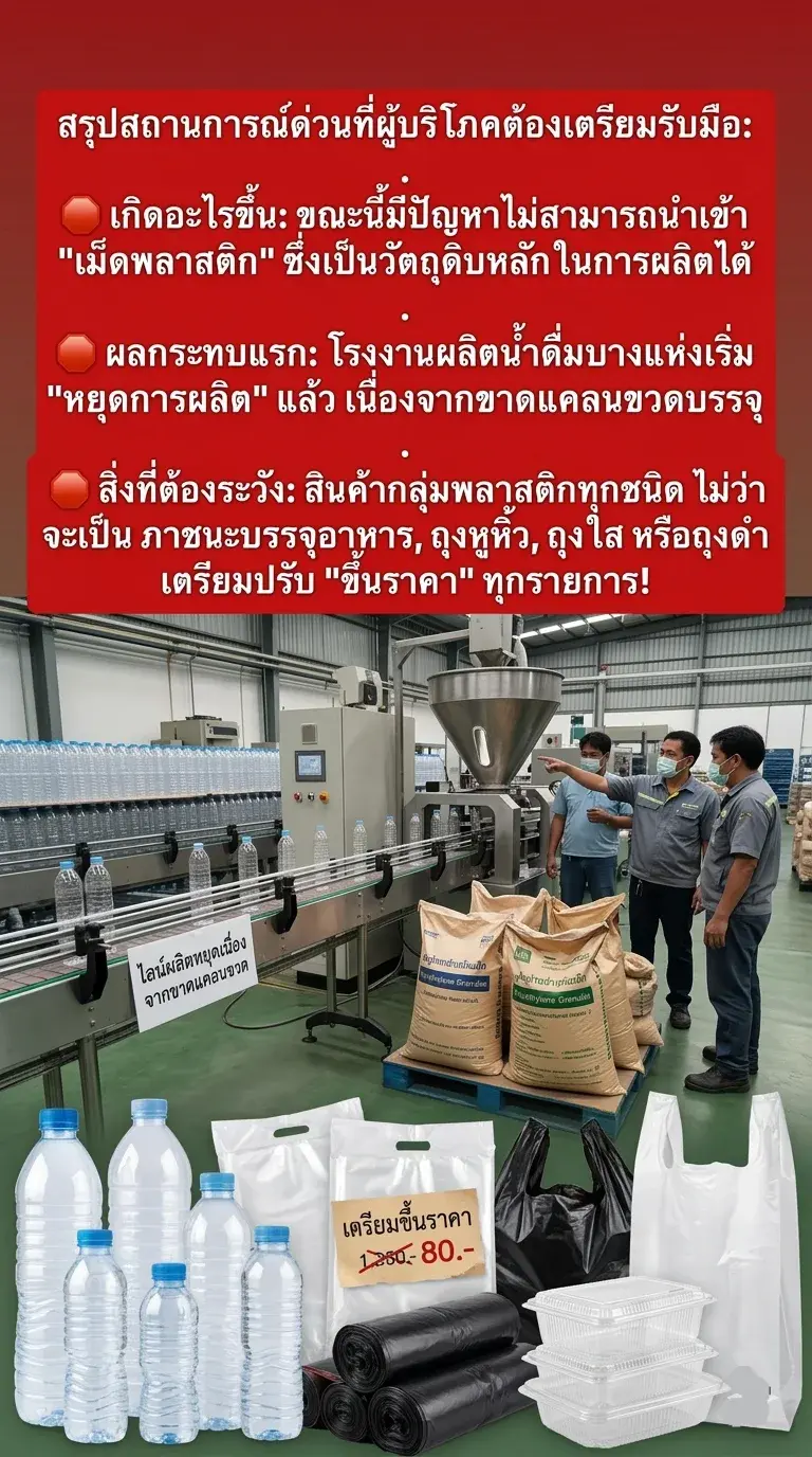 ช็อกหนัก! วิกฤตเม็ดพลาสติกขาดแคลน โรงงานน้ำดื่มสะดุด-สินค้าพลาสติกจ่อขึ้นราคายกแผง! 🚨