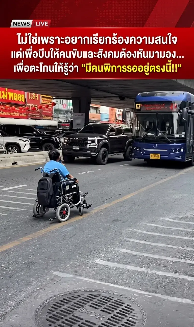 ไม่ใช่เพราะอยากเรียกร้องความสนใจ แต่เพื่อบีบให้คนขับและสังคมต้องหันมามอง... เพื่อตะโกนให้รู้ว่า "มีคนพิการรออยู่ตรงนี้!!"