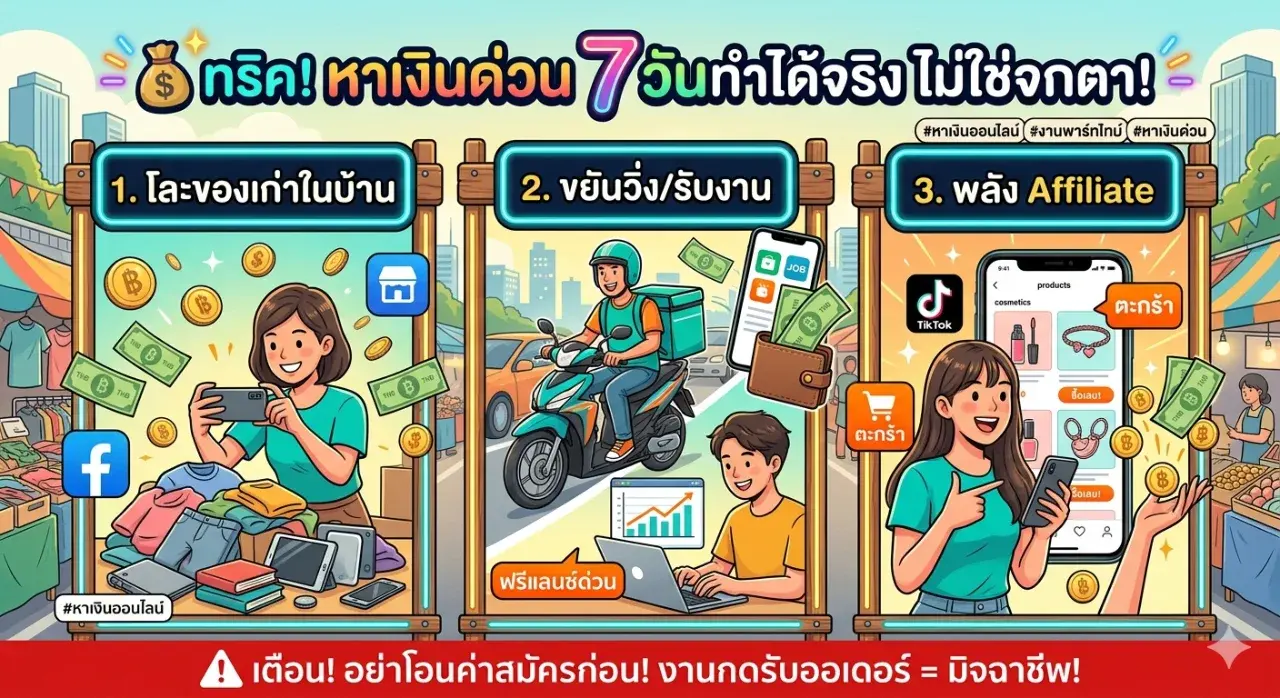 แชร์ทริค! วิธีหาเงินเข้ากระเป๋าฉบับเร่งด่วน 7 วันทำได้จริง (ไม่ใช่งานกดรับออเดอร์!)