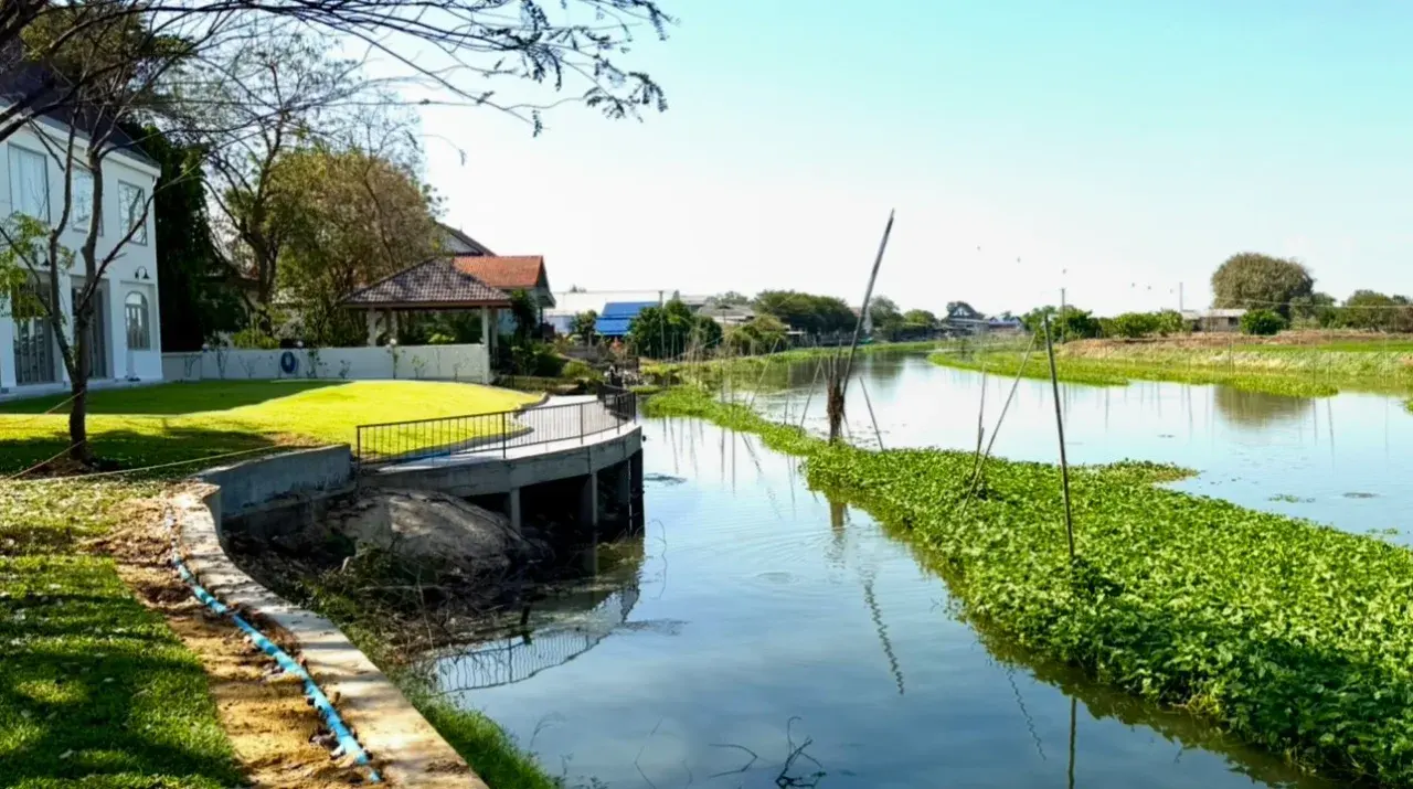 จากมุมระเบียงของร้าน เมื่อมองลงไปในลำคลองจะเห็นภาพวิถีชีวิตของชาวบ้านที่ยังคงผูกพันกับธรรมชาติ บางช่วงของคลองมีการปลูก ผักบุ้ง และ ผักกระเฉด ที่กำลังแตกยอดอวบเขียวสด เพราะสายน้ำที่ไหลผ่านหล่อเลี้ยงพืชผักเหล่านี้อยู่เสมอ เป็นภาพเรียบง่ายที่สะท้อนวิถีชีวิตของคนริมน้ำได้อย่างน่ารักและเป็นธรรมชาติ