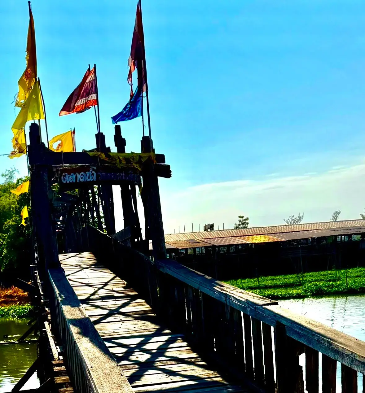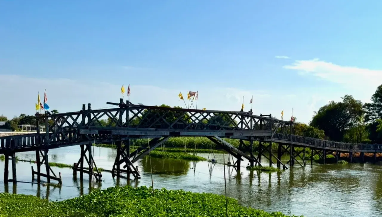 ไม่ไกลจากจุดนี้ ยังมีสะพานไม้เก่าแก่ที่ทอดข้ามคลองไปยัง