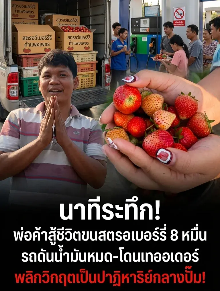 นาทีระทึก! พ่อค้าสู้ชีวิตขนสตรอว์เบอร์รี 8 หมื่น รถดันน้ำมันหมด-โดนเทออเดอร์ พลิกวิกฤตเป็นปาฏิหาริย์กลางปั๊ม!
