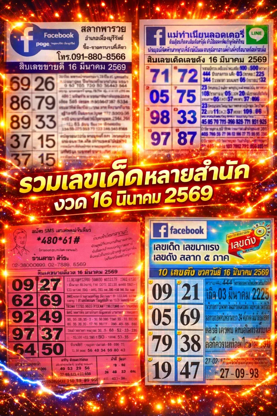 รวมเลขเด็ดหลายสำนัก งวด 16 มีนาคม 2569 คอหวยแห่ส่อง เลขดังโผล่ซ้ำหลายตำรา