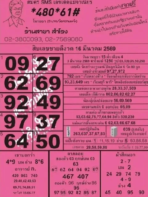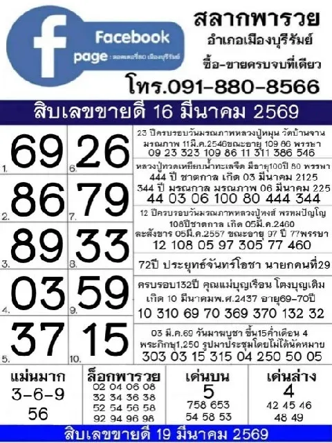 ส่องเลขเด็ด!! มัดรวม 10อันดับ เลขเด็ดขายดี งวดวันที่ 16 มีนาคม 2569