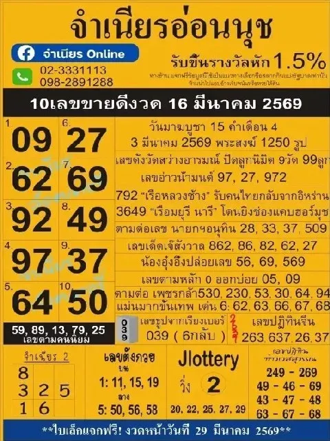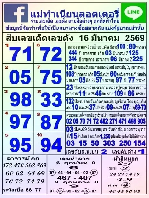 รวมเลขเด็ดหลายสำนัก งวด 16 มีนาคม 2569 คอหวยแห่ส่อง เลขดังโผล่ซ้ำหลายตำรา