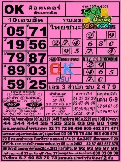ขอบคุณเจ้าของข้อมูล : 10อันดับ เลขเด็ดขายดี แล้วพบกันในงวดต่อไปขอให้ทุกท่านโชคดี