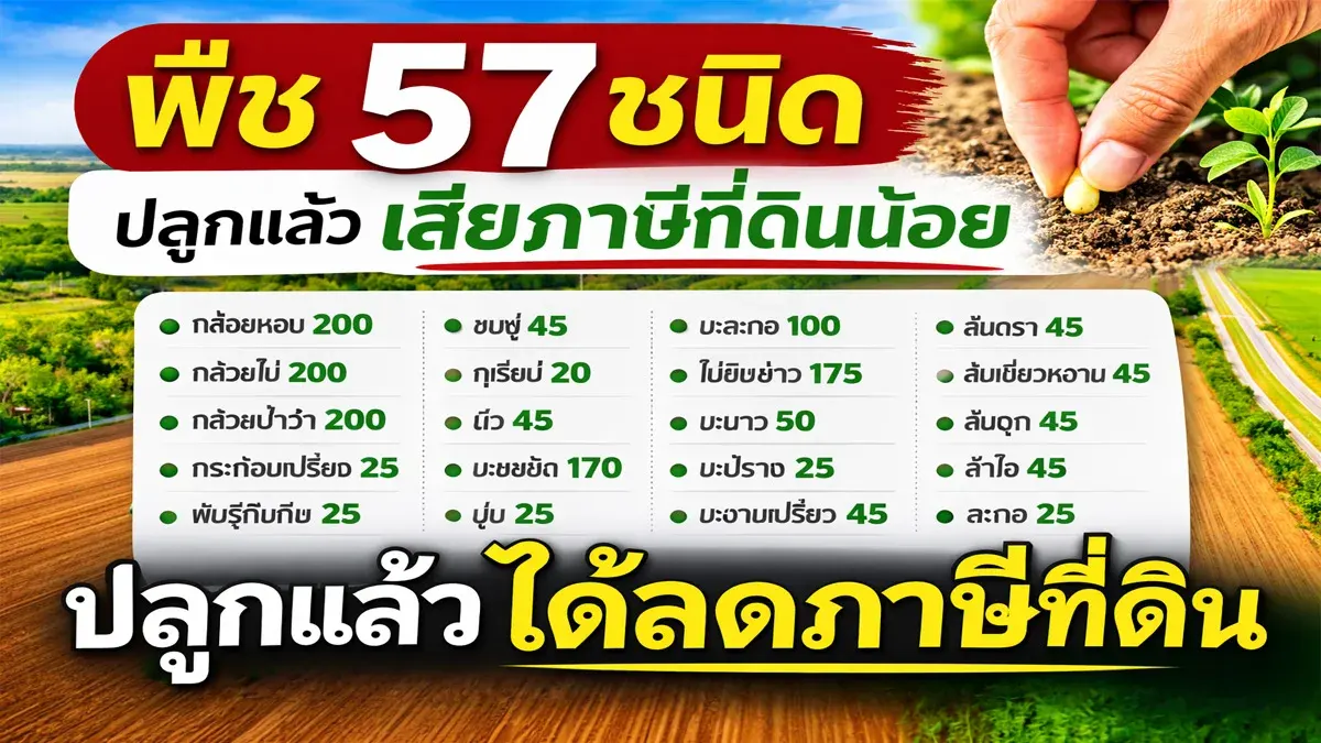 พืช 57 ชนิด ปลูกแล้วได้ลดภาษีที่ดิน พลิกที่ว่างเปล่าทำเกษตรจำแลง เสียภาษีที่ดินน้อยลง