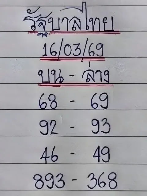 หลุดแนวทางหวย 16 มี.ค. 69 ชุดเด่น 65–96–87 พร้อม 3 ตัวแรง 887 987 789 คอหวยแห่ตาม