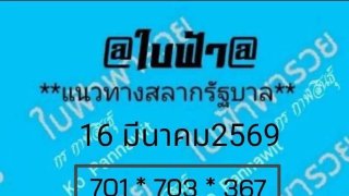 แนวทางหวยใบฟ้า 16 มี.ค. 69 ปล่อยเลขเด็ด 701–703–367 พร้อมชุดสองตัว 01 03 07 คอหวยรีบจด
