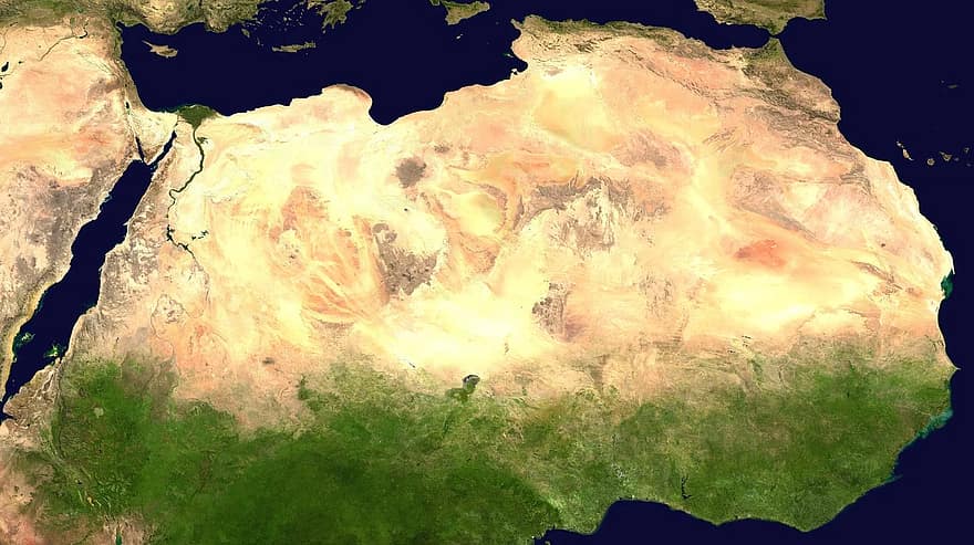 รอบผืนน้ำสีเข้มนั้นคือมวลแผ่นดินสีน้ำตาลแกมส้มกว้างไกลสุดสายตา ฝั่งหนึ่งคือแอฟริกาเหนือ อีกฝั่งคืออาระเบีย ทั้งสองต่างถูกนิยามด้วยภูมิประเทศแบบทะเลทรายที่ทั้งรุนแรงและงดงาม โดยเฉพาะด้านแอฟริกาเหนือซึ่งเป็นที่ตั้งของ ทะเลทรายซาฮารา ดินแดนที่หลายคนคุ้นภาพว่าเป็นเพียงทะเลทรายทรายร้อนระอุ แต่แท้จริงแล้วซาฮาราคือโลกอีกใบที่ซับซ้อนกว่านั้นมาก มันเป็นทะเลทรายเขตร้อนที่ใหญ่ที่สุดในโลก และเมื่อเทียบกับทะเลทรายทุกประเภท ก็มีขนาดใหญ่เป็นอันดับต้น ๆ ของโลก ครอบคลุมพื้นที่ราว 9.2 ล้านตารางกิโลเมตร กว้างใหญ่พอ ๆ กับทั้งสหรัฐอเมริกาหรือจีน และพาดผ่านแอฟริกาเหนือตั้งแต่มหาสมุทรแอตแลนติกทางตะวันตกไปจนถึงทะเลแดงทางตะวันออก