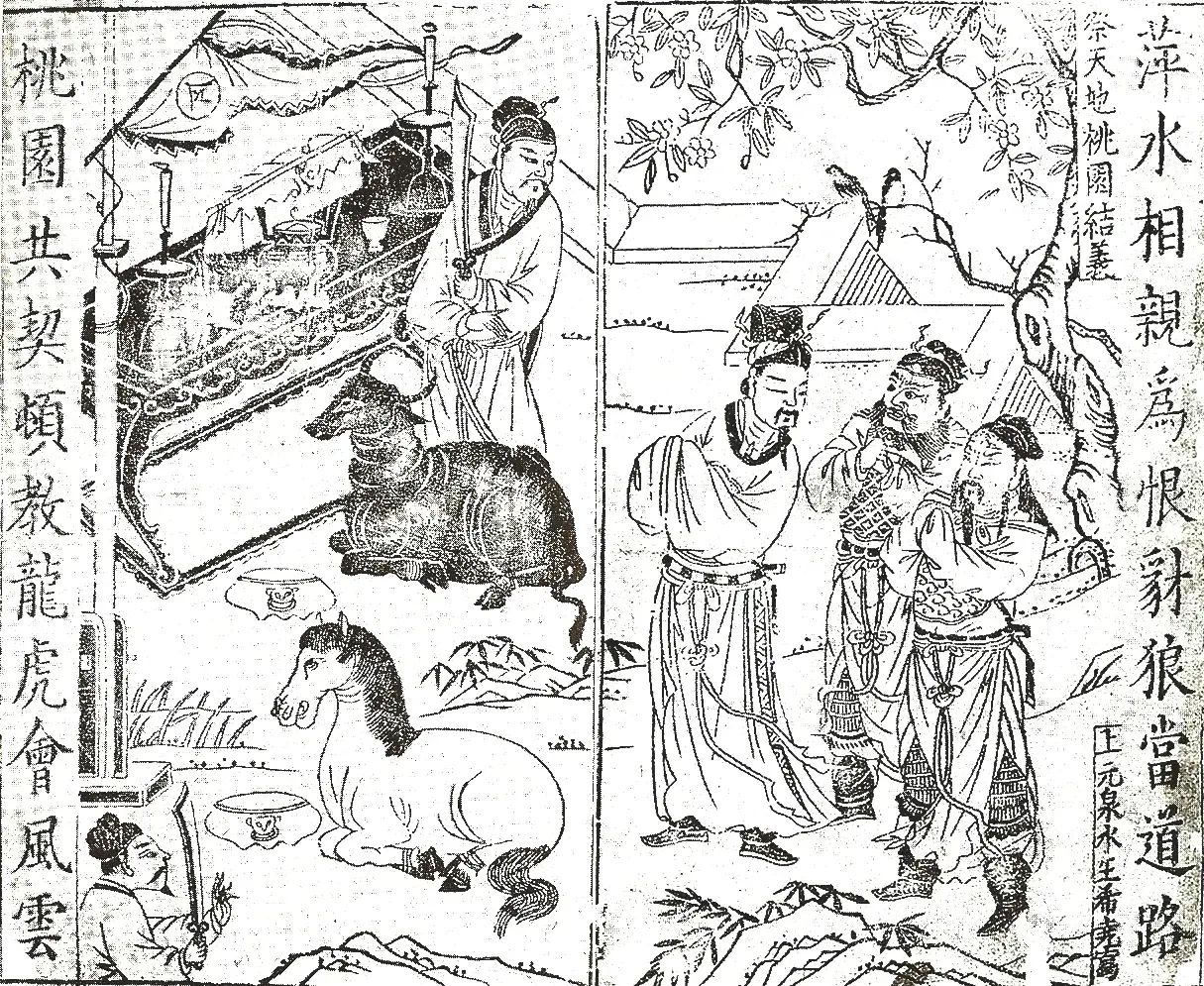 "บุคคลผู้นี้มีนามกรว่า มีชื่อรองว่า เสียนเต๋อ...เล่าปี่เห็นลักษณะของชายผู้นี้ผิดคนทั้งปวง จึงถามชื่อแซ่ ชายผู้นั้นตอบว่า "ข้าพเจ้า แซ่เตียว ชื่อหุย มีชื่อรองว่า อี้เต๋อ"...เล่าปี่จึงชวนให้มานั่งด้วยกัน แล้วถามชื่อเสียงเรียงนาม ชายนั้นตอบว่า "ข้าพเจ้า แซ่กวน ชื่ออู มีชื่อรองว่า โชว่ฉาง ต่อมาเปลี่ยนชื่อเป็น หยินฉาง"