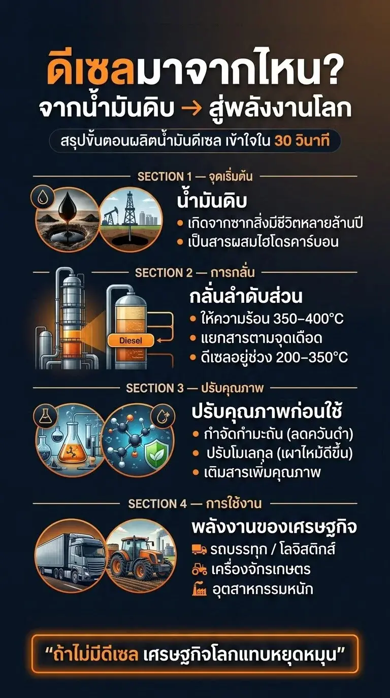 เคยสงสัยไหมว่า…น้ำมันดีเซลที่เราเติมรถทุกวัน จริง ๆ แล้วมาจากไหน?