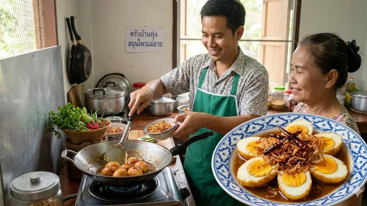 ในบรรดาอาหารไทยที่วางขายตามร้านข้าวแกง "ไข่ลูกเขย" คือหนึ่งในเมนูที่โดดเด่นด้วยรูปลักษณ์ของไข่ต้มทอดผิวสีทองราดซอสสีน้ำตาลเข้ม โรยหน้าด้วยหอมเจียวและพริกแห้งทอด รสชาติเปรี้ยว หวาน เค็มที่ลงตัวนี้ทำให้หลายคนชื่นชอบ แต่สิ่งที่น่าสนใจยิ่งกว่ารสชาติคือ "ชื่อเรียก" ที่ชวนสงสัยว่าเมนูนี้ไปเกี่ยวข้องกับลูกเขยได้อย่างไร และทำไมตำราอาหารชาววังส่วนใหญ่ถึงแทบไม่มีการบันทึกชื่อนี้ไว้เลย