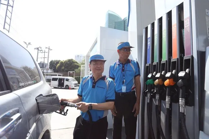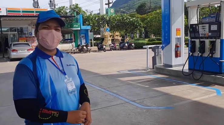 พนักงานเติมน้ำมันในสถานีบริการน้ำมันเชื้อเพลิง (หน้าลาน)
