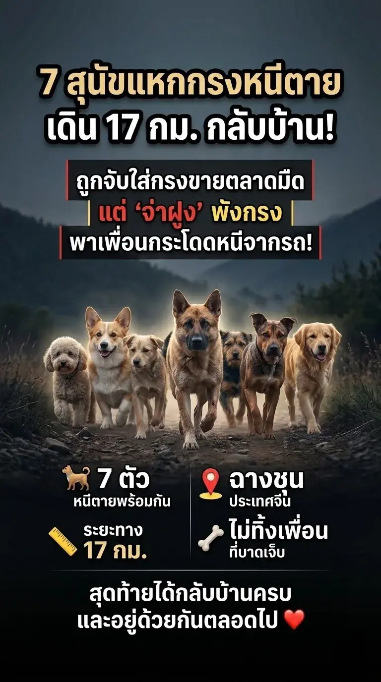 ท่ามกลางกระแสไวรัลที่สั่นสะเทือนหัวใจผู้คนในโลกออนไลน์ของประเทศจีน คงไม่มีเรื่องไหนจะตราตรึงไปกว่าวีรกรรมความกล้าหาญของสุนัข 7 ตัว ในเมืองฉางชุน มณฑลจี๋หลิน ที่ร่วมแรงร่วมใจกันหักกรงเหล็กข้ามผ่านระยะทางนับสิบกิโลเมตรเพื่อหนีจากชะตากรรมอันโหดร้ายกลับสู่อ้อมกอดของเจ้าของอีกครั้ง นี่ไม่ใช่แค่เรื่องการเอาชีวิตรอด แต่คือบทพิสูจน์ของคำว่า "มิตรภาพที่ไม่มีวันทิ้งกัน"