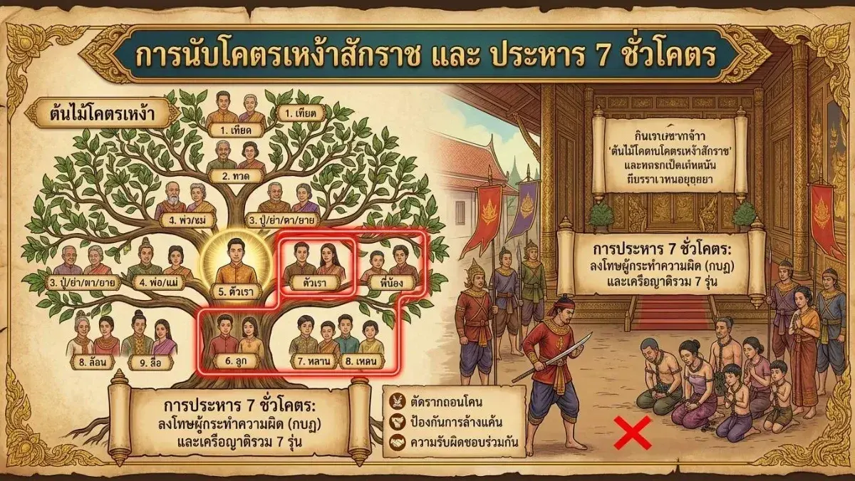 #เจ็ดชั่วโคตร #กฎหมายตราสามดวง #ประวัติศาสตร์ไทย #พระไอยการกระบดศึก #คติชนวิทยา #ลำดับญาติ #วัฒนธรรมไทย
