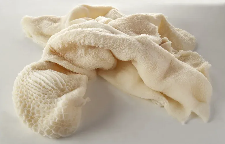 พื้นผิวเป็นตุ่ม ๆ ซึ่งทำให้เกิดลักษณะเหมือนผ้าขี้ริ้ว