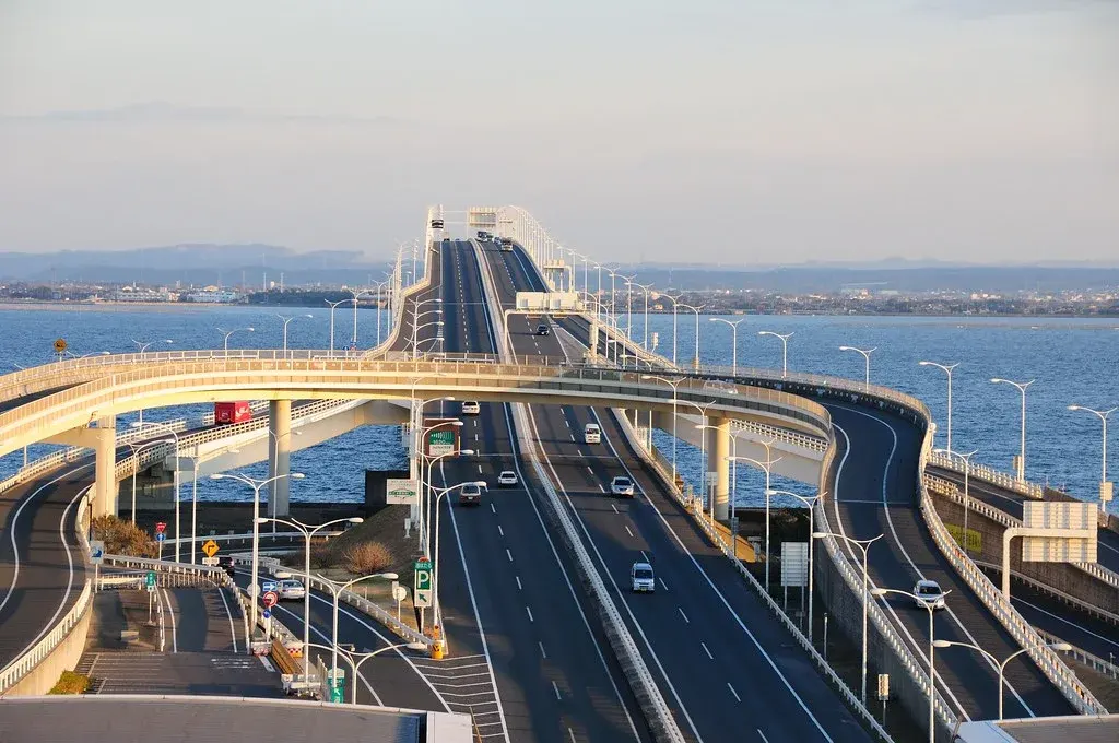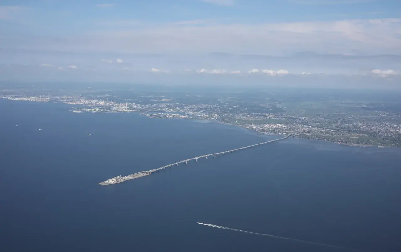 สิ่งที่ทำให้โตเกียว เบย์ อควา-ไลน์โดดเด่นเหนือทางด่วนทั่วไป คือรูปแบบการก่อสร้างที่ผสมผสานทั้ง “สะพาน” และ “อุโมงค์ใต้น้ำ” เข้าไว้ด้วยกันอย่างลงตัว ฝั่งคิซาราซุเป็นสะพานยาวประมาณ 4.4 กิโลเมตร พาดตัวเหนือผืนน้ำอย่างสง่างาม ขณะที่ฝั่งคาวาซากิเป็นอุโมงค์ใต้น้ำยาวประมาณ 9.6 กิโลเมตร ซึ่งนับว่าเป็นหนึ่งในอุโมงค์ใต้น้ำสำหรับรถยนต์ที่ยาวที่สุดในโลก การเลือกใช้โครงสร้างแบบผสมนี้ไม่ได้เกิดขึ้นเพื่อความแปลกใหม่ แต่เป็นผลจากการคำนวณอย่างละเอียด ทั้งเรื่องสภาพภูมิประเทศ การเดินเรือในอ่าว และข้อจำกัดด้านวิศวกรรมในแต่ละฝั่งของเส้นทาง